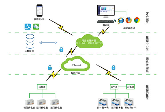 對于分布不同省、地市或同地市不同區(qū)域的連鎖商業(yè)、集團(tuán)、百貨、門店、物業(yè)、院校等業(yè)務(wù)分散,要求集中管理、線上支付,低額提醒、欠費(fèi)告警。但常規(guī)的本地插卡付費(fèi)、本地預(yù)付費(fèi)并不能完全滿足客戶管理需求,預(yù)付費(fèi)云平臺(tái)應(yīng)運(yùn)而生。AcrelCloud-3200水電預(yù)付費(fèi)云平臺(tái)無縫集成商業(yè)、物業(yè)公司、集團(tuán)企業(yè)、院校等分散布置的安科瑞DDSY/ADF系列電子式預(yù)付費(fèi)電能表、閥控智能水表等,提供微信、支付寶、銀聯(lián)等可選的在線支付方式,大大方便了用戶充值、圈存,提供預(yù)警和充值、退費(fèi)、電能消耗等記錄查詢,方便用戶和管理方的數(shù)據(jù)統(tǒng)計(jì)和財(cái)務(wù)分析,提供先交費(fèi)后使用的管控機(jī)制,大大降低了管理部門的收費(fèi)成本。
